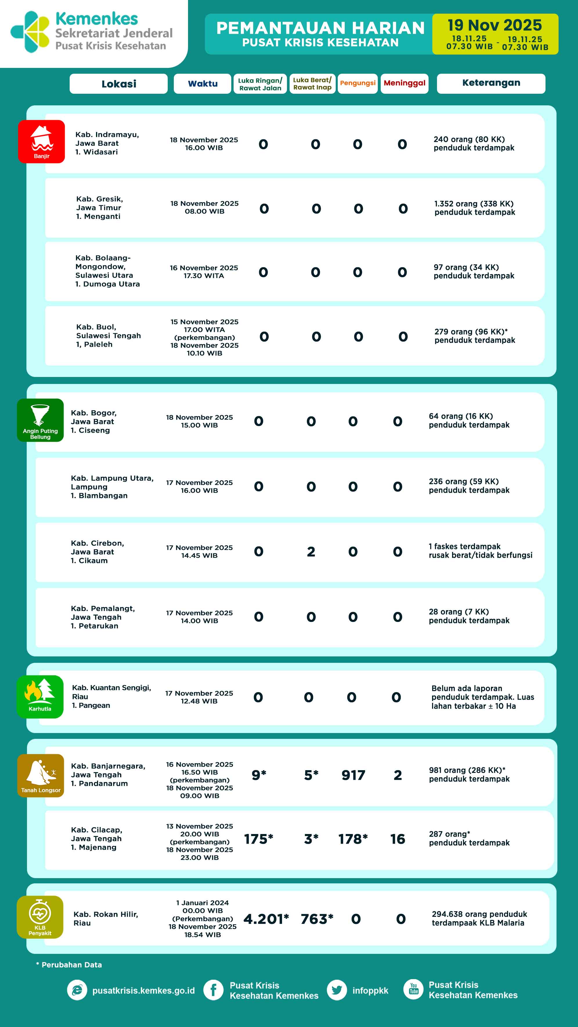 Infografis Pemantauan Harian Pusat Krisis Kesehatan 19 November 2025