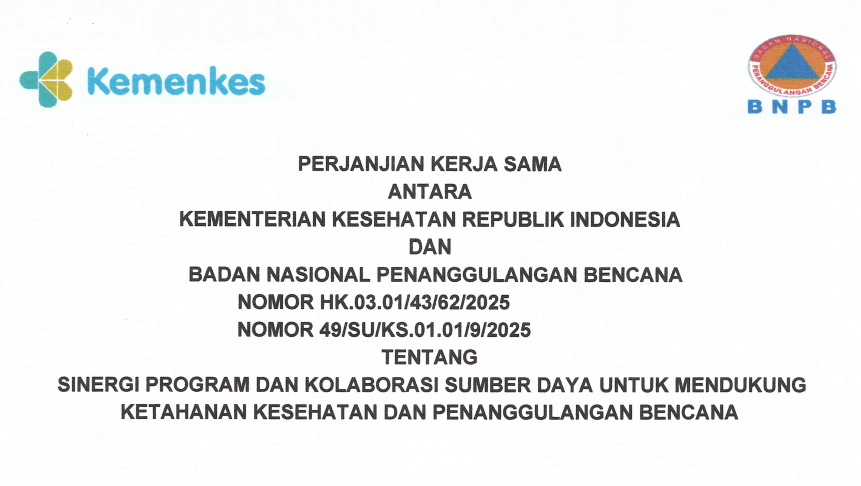 Disini anda dapat menggunduh Perjanjian Kerjasama Antara Kementerian Kesehatan dengan Badan Nasional Penanggulangan Bencana Periode 2025 - 2028..