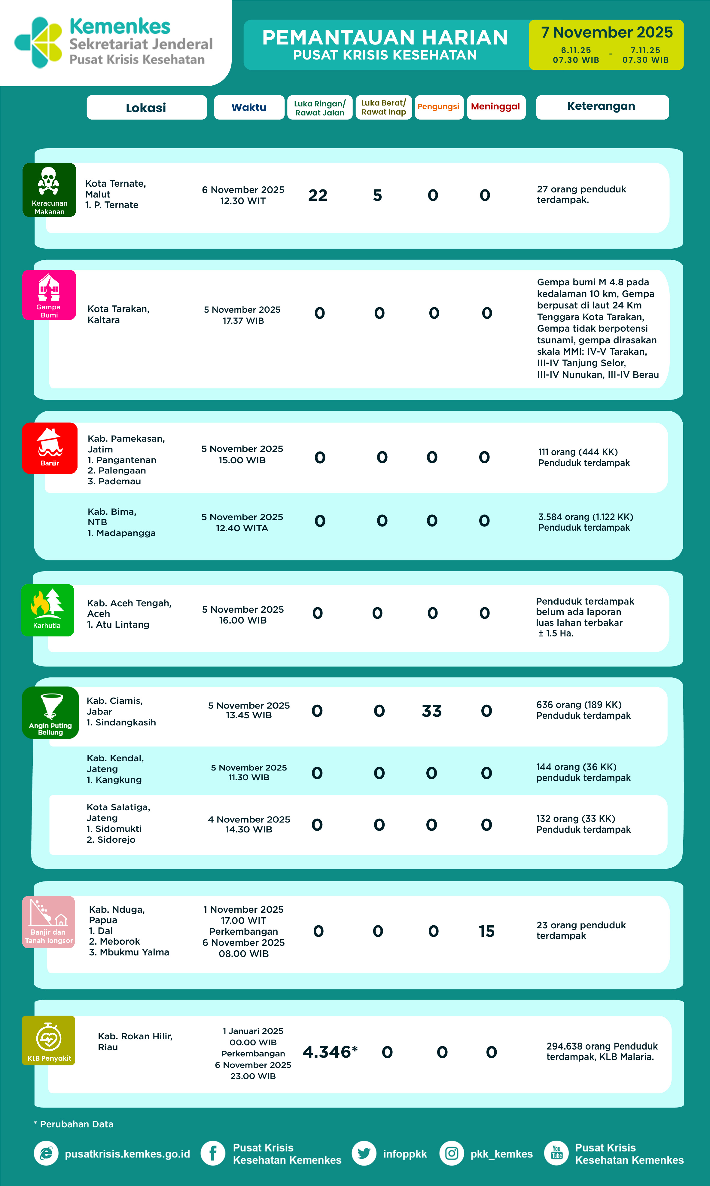 Disini anda dapat mengunduh Infografis Pemantauan Harian Kejadian Krisis Kesehatan Pusat Krisis Kesehatan Kementerian Kesehatan, tanggal 10 April 2022 pukul 07.30. Terdapat laporan kejadian 3 banjir, 1 karhutla, 3 angin puting beliung dan 1 gempa bumi